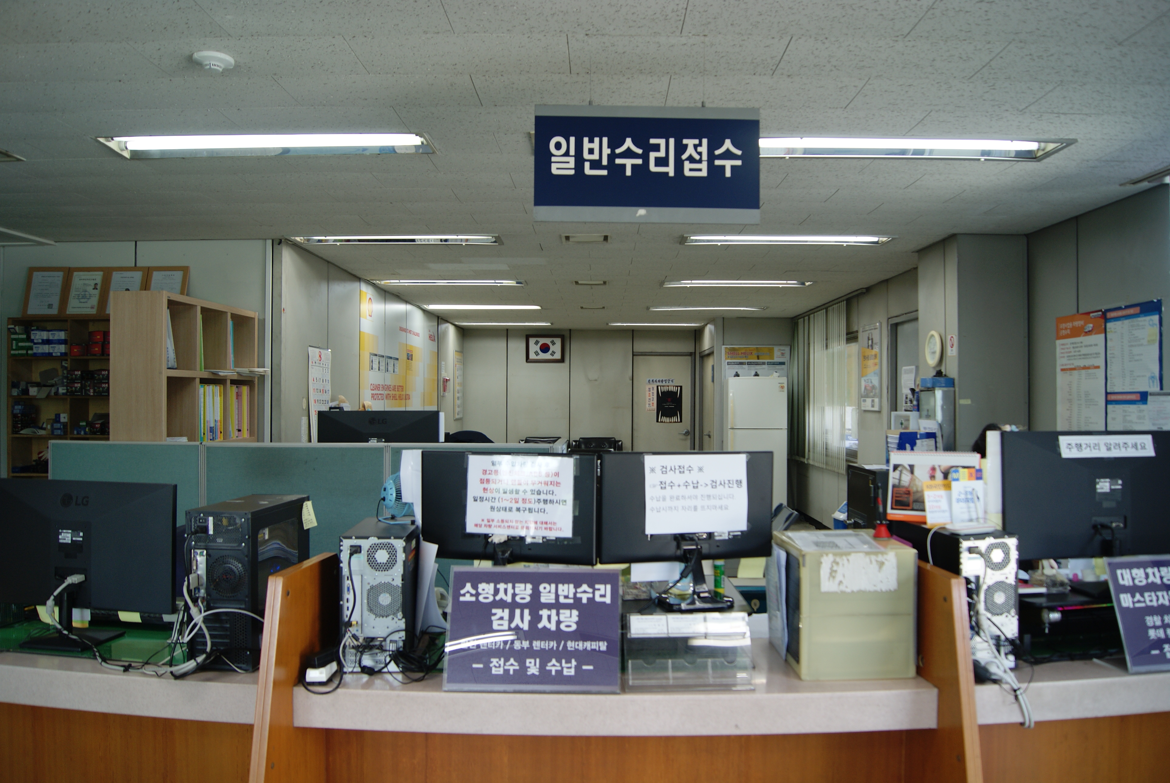 5. 정비가 완료되면 직원 안내에 따라 접수 하신 A동 사무실에서 수납하시고 정비점검명세서를 수령 후 출고 하시면 됩니다.
